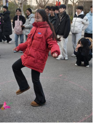 比赛现场,五彩的毽子在空中划出一道道优美的弧线,选手们各展所长,有的动作轻盈灵巧,有的技巧娴熟多变,充分展现了踢毽运动的独特魅力。团体接力赛中,队员们默契配合,相互鼓励,展现了良好的团队协作精神。整个比赛过程精彩纷呈,掌声、笑声、欢呼声此起彼伏,为冬日校园增添了无限活力。