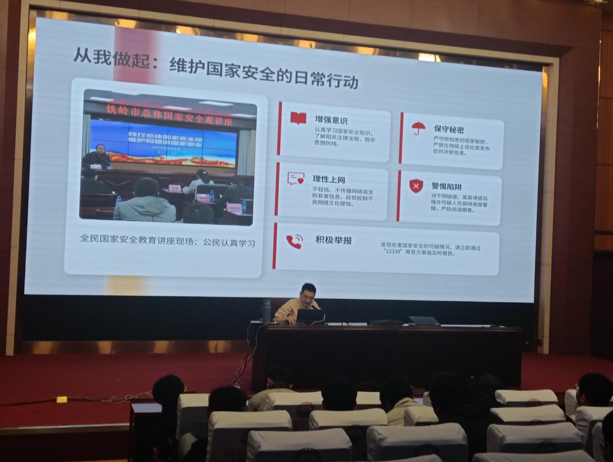 讲座围绕今年国家安全教育日主题,从时代背景、核心要义、实践要求与未来展望等方面展开系统讲解。2026年全民国家安全教育日的活动主题为“统筹发展和安全 护航‘十五五’新征程”,宣传重点为大力学习宣传习近平法治思想及其丰富发展的最新成果、总体国家安全观、新时代国家安全事业取得的历史性成就,以及国家安全法和网络数据安全管理条例等相关法律法规。