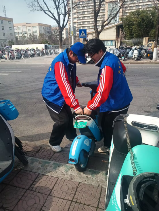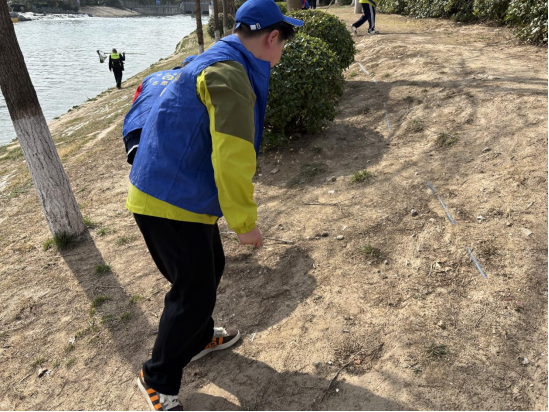活动当日,在孙梓淇老师的现场指导和统筹安排下,志愿者们手持清洁工具,有序分组,在黄河故道沿岸的绿化带、步行道及公共休息区展开行动。他们细致捡拾散落的塑料袋、饮料瓶、废纸等生活垃圾,不放过任何一个隐蔽角落的烟头,切实改善了河岸环境。针对沿途发现的倒伏、散乱的共享单车,志愿者们逐一扶正,并将其整齐摆放至指定停车区域,恢复了公共空间的秩序与美观。