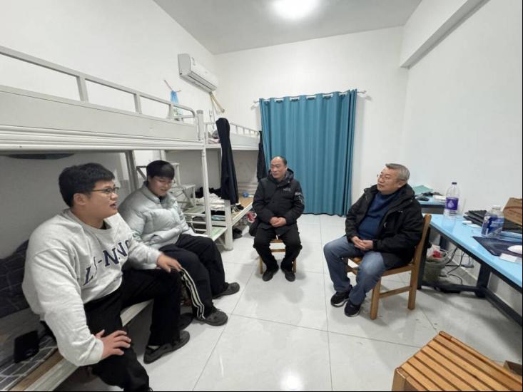在得壹能源科技有限公司殷经理的陪同下,曹玉彦、李文武深入学生宿舍,与同学们亲切交流,详细询问了他们的工作适应、生活起居及实习收获等情况,认真听取同学们在实习过程中的感受与建议。曹玉彦对同学们展现出的积极面貌表示肯定,并勉励大家珍惜实践机会,将理论知识与岗位技能相结合,在实践中不断提升综合素养。
