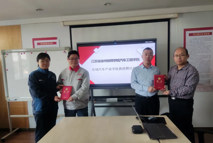 2024年初江苏省徐州技师学院汽车工程学院与安徽芜湖奇瑞汽车股份有限公司签订奇瑞产业学院项目,根据岗位职责和技能,采用全日制学籍注册教学制,校企共同制定两年四段工学一体人才培养模式,双方导师共同上课,徐芜两地教学模式,理论结合实践,教学穿插实习。