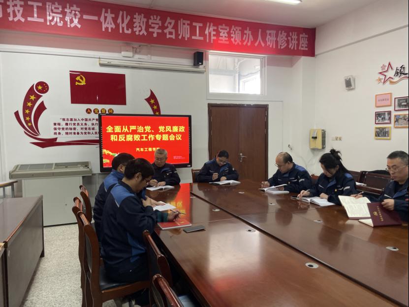 为深入学习贯彻习近平总书记关于党的自我革命的重要思想,全面落实学校全面从严治党工作会议精神,系统谋划部署学院年度党建与廉政建设工作,5月16日,汽车工程学院党总支组织召开全面从严治党、党风廉政和反腐败工作专题会议。学院党总支委员、教务科、学生科参加会议。会议由学院党总支书记曹玉彦主持。
