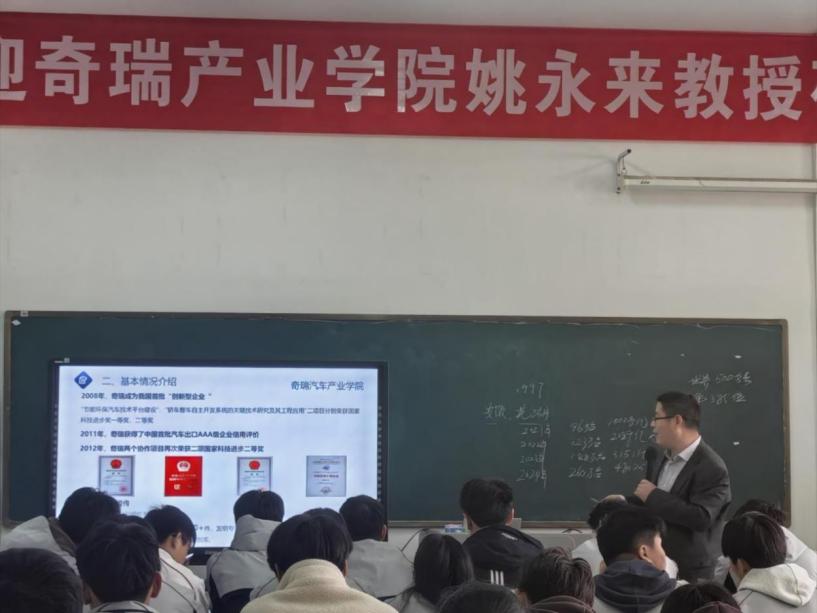 活动开展的同时,我们邀请奇瑞产业学院姚永来教授进行技能成才之路系列讲座,坚定学生技能成长道路。